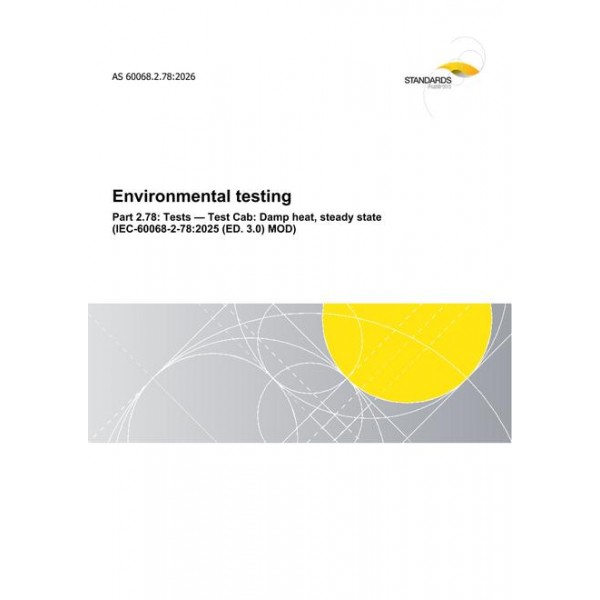 AS 60068.2.78:2026 adopts and modifies IEC 60068 2 78:2025 (ED. 3.0) which establishes a test method for determining the ability of components or equipment to withstand transportation, storage and use under conditions of high humidity.