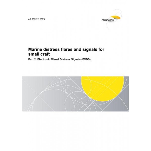 AS 2092.2:2025 specifies the minimum performance requirements and test criteria for a handheld Electronic Visual Distress Signaling Device (EVDS) intended to be used by boaters and others to meet national and local emergency distress signal carriage requirements.