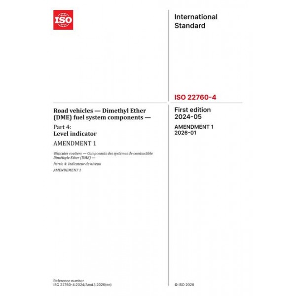 ISO 22760-4:2024/Amd1:2026 - Amendment 1: Road vehicles - Dimethyl Ether (DME) fuel system components - Part 4: Level indicator - Amendment 1