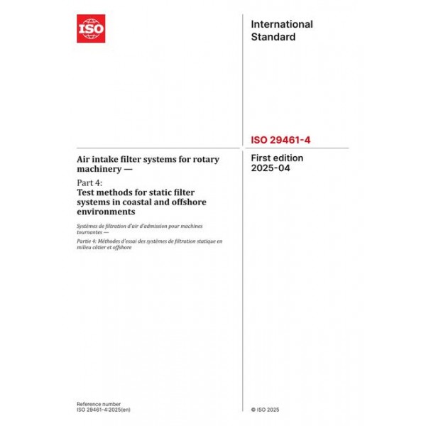 ISO 29461-4:2025 Air intake filter systems for rotary machinery - Part 4: Test methods for static filter systems in coastal and offshore environments